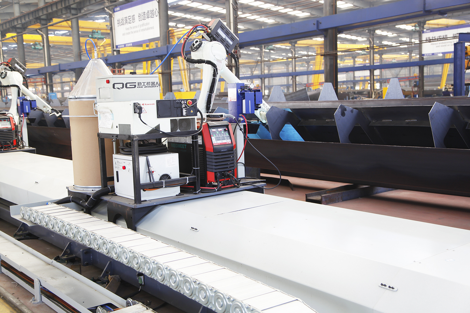 所以,我們列裝了一系列的焊接機(jī)器人,包括目前這條正在運(yùn)行的單梁起重機(jī)主梁內(nèi)縫機(jī)器人焊接流水線