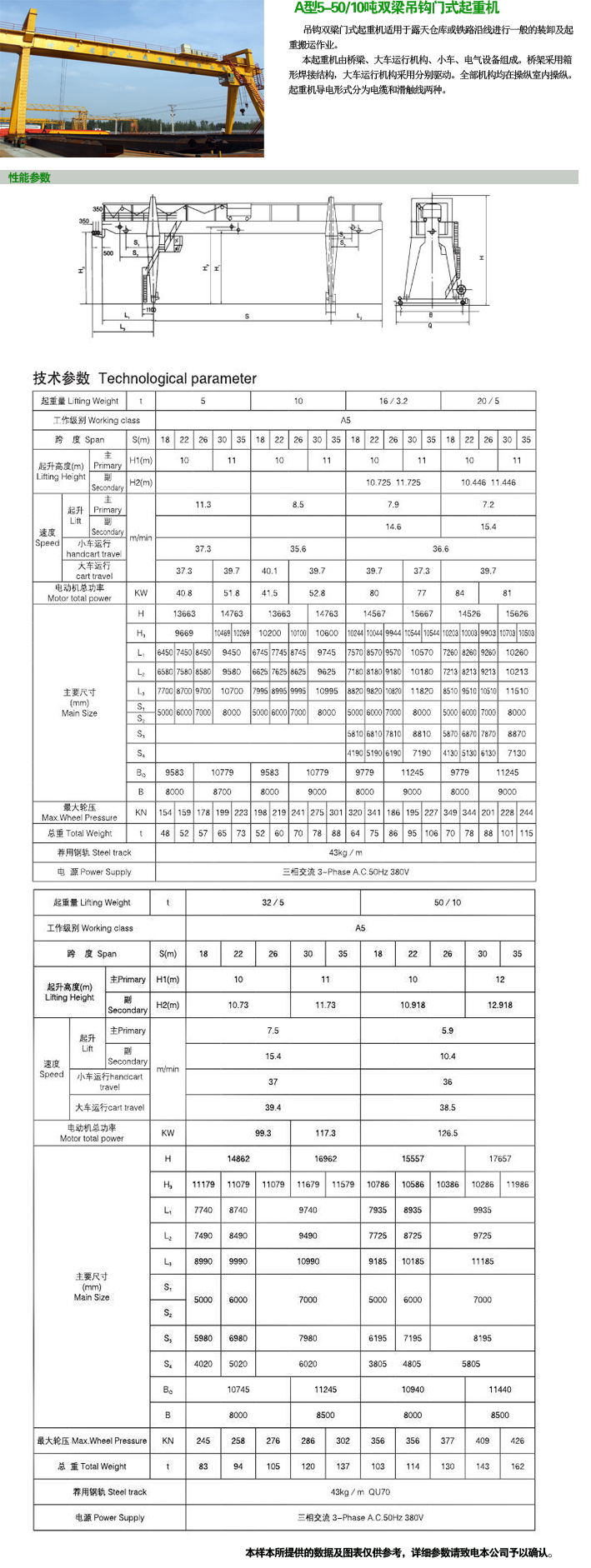 A型5-50/10噸雙梁吊鉤門式起重機 · 產(chǎn)品介紹